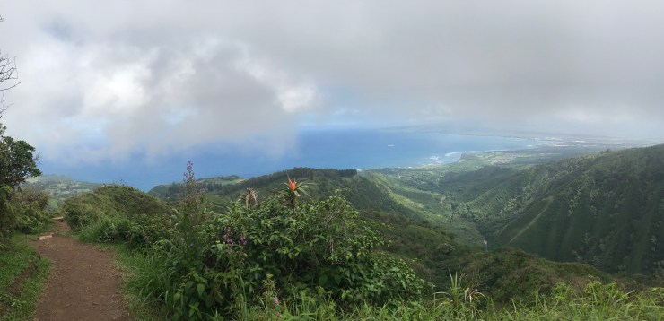 This Westin resort is lovely, and the perfect pick for families (especially, with children) and senior citizens. But I’m quite sure I was the only solo traveler at the resort. Not a bad thing, but it does decrease the chance of striking up a fun conversation with a fellow traveler at the hotel. Of course, I didn’t spend too much time in the hotel anyway, as lovely as it was. Also, way better for my budget to take advantage of all the free, amazing outdoor activities available on Maui. On Monday, my first full day on the island, I drove up to Maui’s north shore (a distance of only 27 miles, but one that takes close to 1.5 hours to drive given that much of it is a one-lane road, with two-way traffic, and tons of hairpin curves- WAY more challenging than driving along the Road to Hana) to hike the Waihee Ridge Trail. There are SO many amazing hikes in Maui, and I picked this one as an excuse to drive up north (and for anyone who wants to see the island’s natural blowhole, this route takes you past that). The trail is just under five miles, round trip, and has a decent incline on the way up, making it a good workout. The views from the top are supposed to be spectacular, but as you can see from this photo, all I got was a wall of clouds…